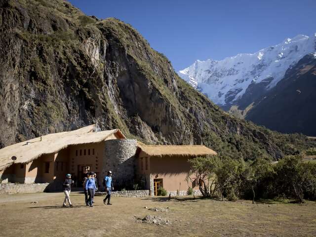 After a leisurely breakfast at the Wayra Lodge, you continue the descent along the banks of the Salkantay River through increasingly verdant scenery. Today you will see more of the local people as the trail takes you past their simple homes and makeshift fences. At lunch time you will arrive at Colpa Lodge, located on a high promontory at the confluence of three rivers. You are greeted by the staff with a Pachamanca lunch, a traditional Peruvian meal cooked in the earth by hot stones that create a natural underground oven. After lunch, spend the afternoon lounging in the sun or relaxing in the outdoor jacuzzi while you take in the panoramic views of the lush green mountains that surround you.