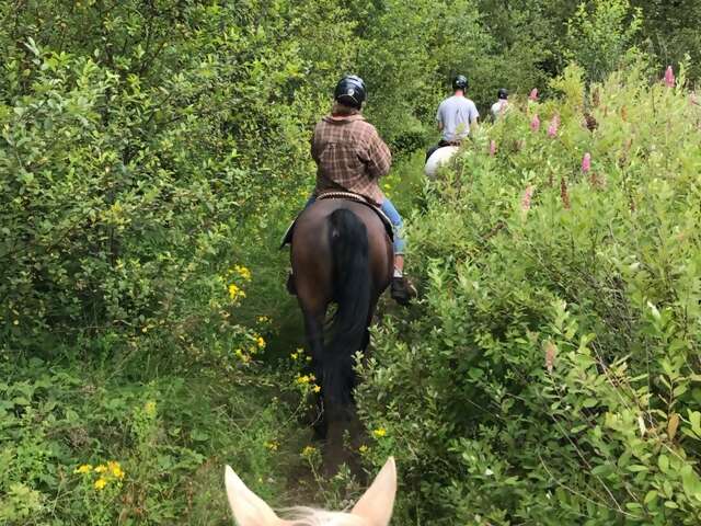 Our riding excursion would take place in one of the biggest Regional Parks – Campbell Valley Park in Langley. After a quick introduction to every-one and a summary of the COVID protocols Glen Valley Stables have in place, we were assigned our horses. In no time, we were sitting in the saddle and off riding the trails. It was very funny but the horses naturally fell in line, it was as though they knew the natural order of things.