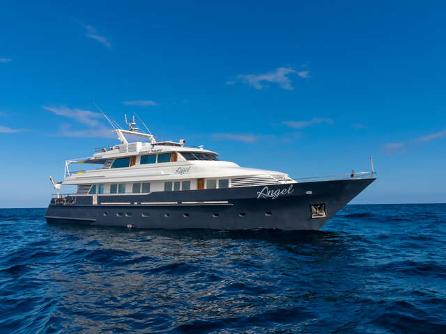 The newest addition to the Royal Galapagos fleet, the Galapagos Angel, embodies classic European elegance. This 16-guest first-class yacht, designed and built in the Netherlands, promises the highest navigation standards for a smooth sailing experience. The two large suites and six convertible cabins offer comfort and versatility, ideal for families, groups, and charters.