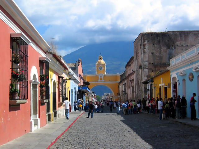 Antigua Guatemala is a city in the central highlands of Guatemala famous for its well-preserved Spanish Mudéjar-influenced Baroque architecture as well as a number of spectacular ruins of colonial churches. It has been designated a UNESCO World Heritage Site. Central Park (Parque Central) is the heart of the city. The reconstructed fountain there is a popular gathering spot. Off to the side of the Central Park, the Arco de Santa Catalina is among the many notable architectural landmarks of La Antigua. La Antigua is noted for its very elaborate religious celebrations during Lent (Cuaresma), leading up to Holy Week (Semana Santa) and Easter (Pascua). Each Sunday in Lent, one of the local parishes sponsor a Procession through the streets of Antigua. Due to its popularity amongst tourists and its very well developed tourism infrastructure, Antigua Guatemala is often used as a central location in which many choose to set up base and from here, visit other tourist areas in Guatemala and Central America. Cruise ships that dock at Guatemalan ports offer trips to Antigua from both the Pacific and Atlantic.