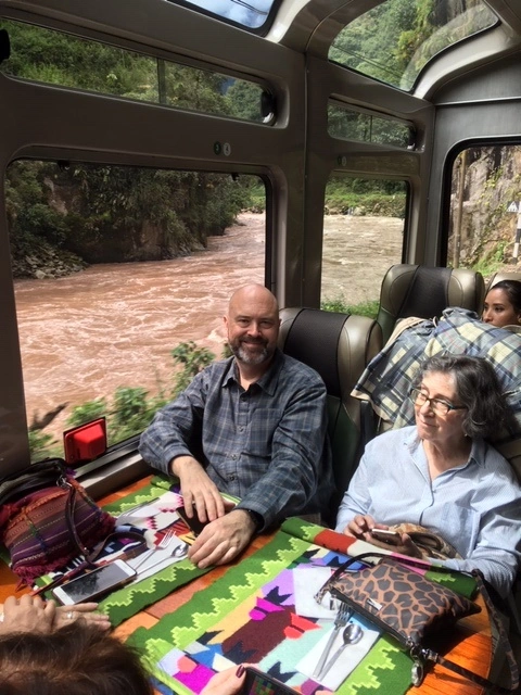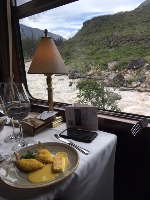 We then took the Sacred Valley train up to Machu Picchu which was really lovely. The seating is very upscale dining and we had a great meal as we chugged along the river …it was very scenic and this train option is quite high end. They had a lovely bar car and an outside observation deck at the back which provided a fantastic experience as you winded your way up the valley.