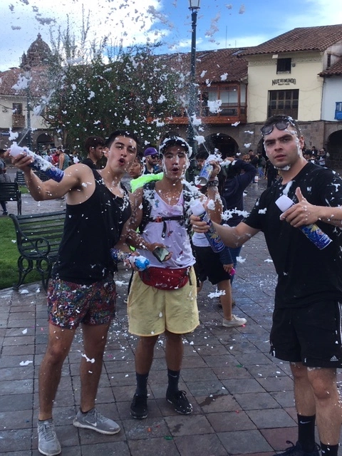 We flew LATAM from Lima to Cuszco which was very cool and scenic as the airport is in the middle of the city which is unique. We were taken to a restaurant on the main square which was busy due to carnival time. The tradition is to throw water or foam onto others so the square was alive with kids and teens having a free for all. It was a unique experience to see this firsthand and be in the middle of the action!