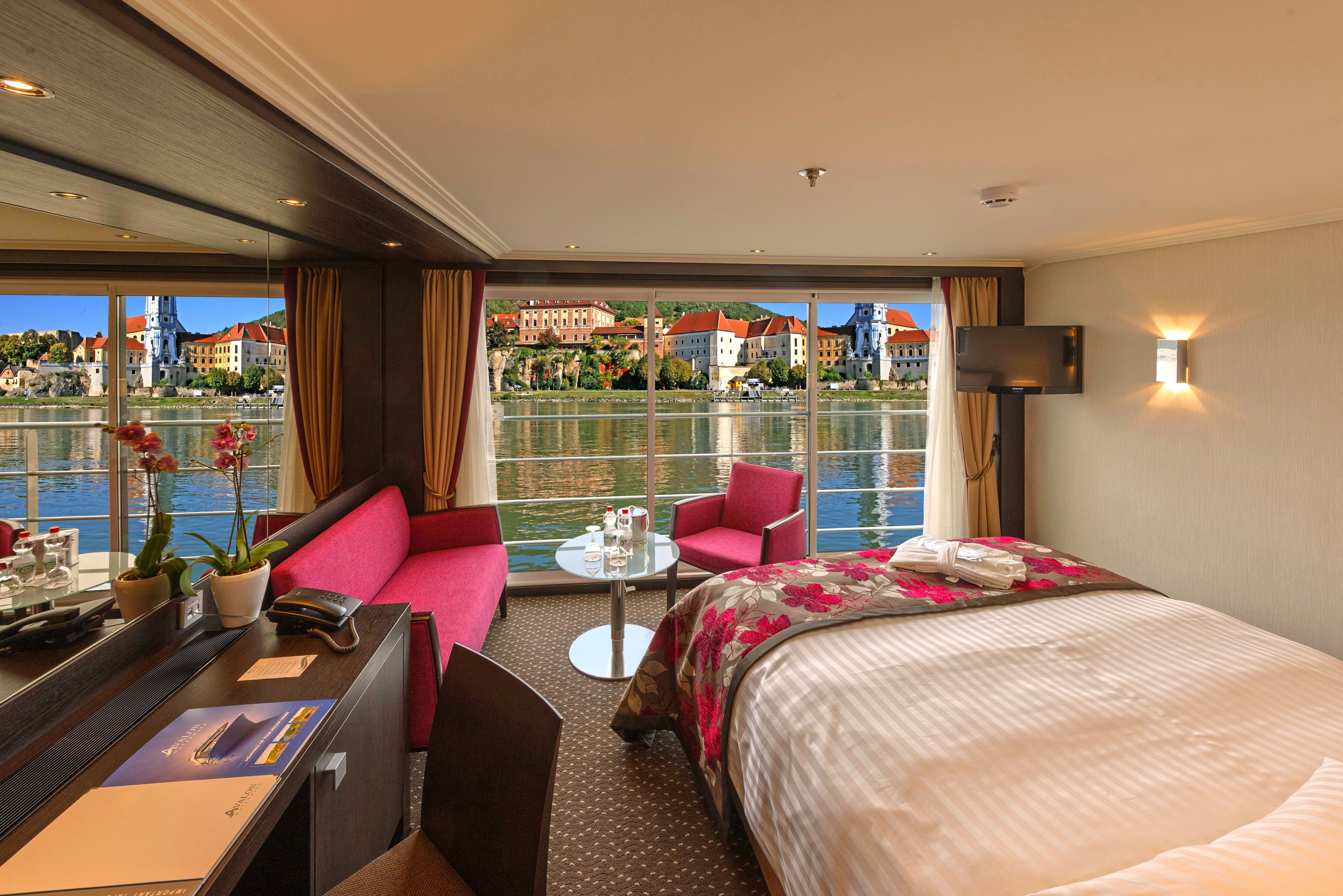 Unique to Avalon, the majority of their staterooms have beds that face out to the window- as they put it "When your bed faces a wall, the view never changes. Which is precisely why our beds, unlike other cruise lines, face a window.* Because we think letting you see the incredible views that river cruising is famous for, is a darned good idea. And if we put that much attention into a bed, imagine what we’ve done for the rest of your experience."