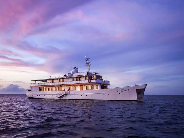 With Quasar you have two options for your cruising vessel; The M/V Evolution and The M/V Grace. Both Yachts have two different itineraries offering a variety of activities across the Galapagos Islands. The M/V Evolution is the newer of the two yachts and allows you to experience the Galapagos as Charles Darwin did: privately and intimately. The Evolution has room for 32 guests and has 3 suites, 9 premium staterooms, and 4 deluxe staterooms. The M/V Grace is Grace Kelly's Royal Honeymoon yacht that has been with the company since 2007 and is their smaller private luxury ship. The Grace has room for only 18 guests and has 4 suites and 5 premium staterooms.