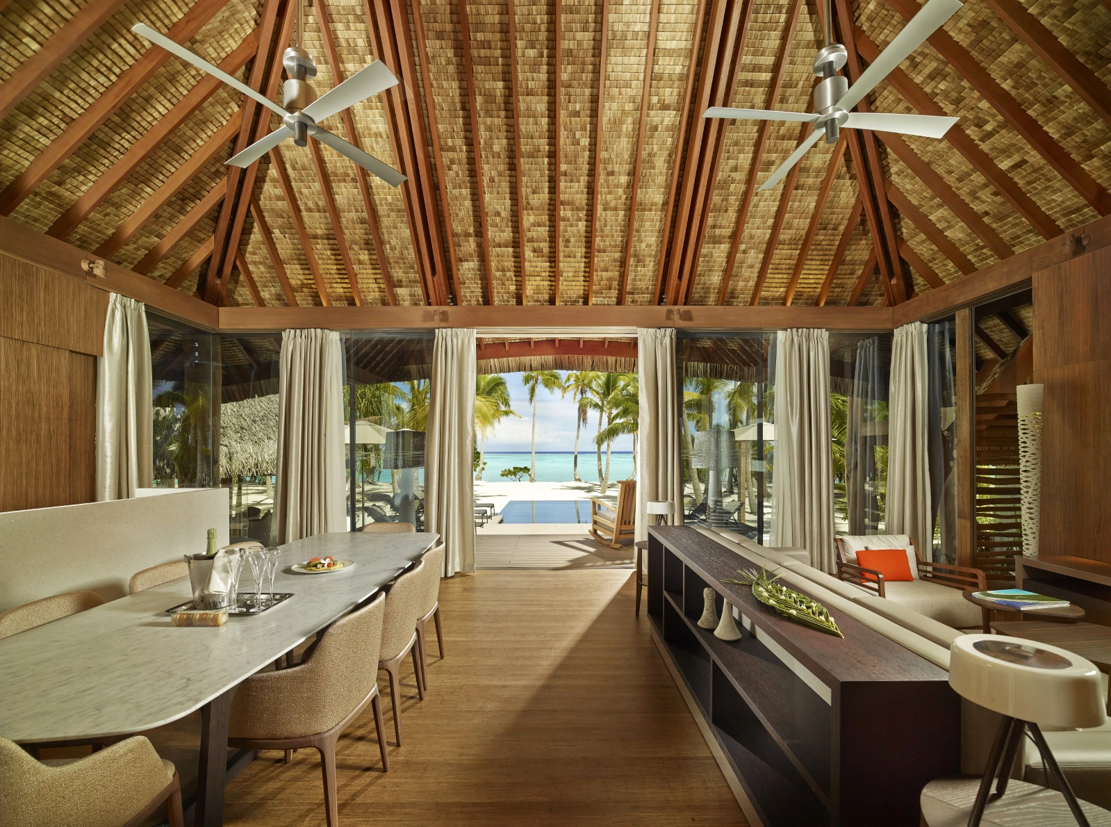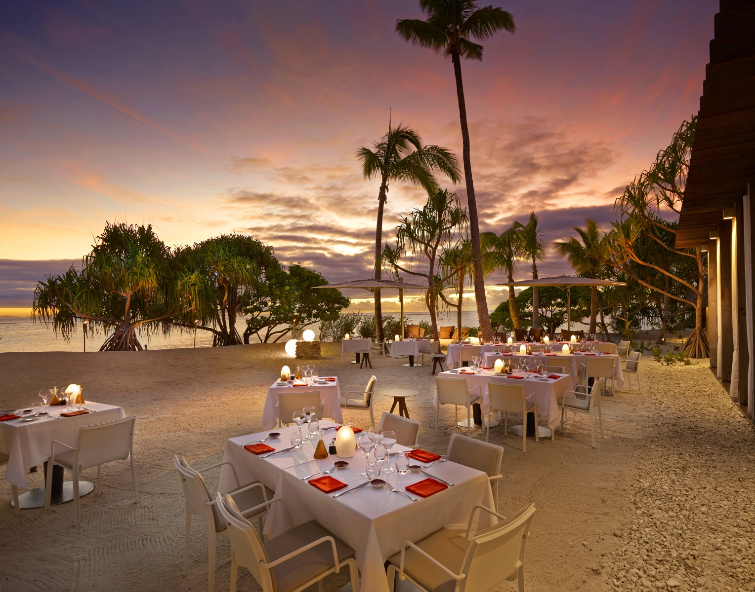 The all-inclusive resort offers a tree-level Lagoon View Bar and the pool-side Bob’s Bar which are both perfect for afternoon conservation or breathtaking sunsets. The beachfront restaurant features exceptional lagoon and ocean views and indoor or outdoor dining. Dishes include a varied menu of Polynesian-inspired dishes alongside French cuisine. For a more intimate experience in the evenings, guests can enjoy the fine dining restaurant which is led by Guy Martin, Chef Propriétaire of the Michelin three star rated Le Grand Véfour Restaurant, one of the most respected dining establishments in Paris. This restaurant features exquisite French cuisine and an extensive, world-class wine cellar.