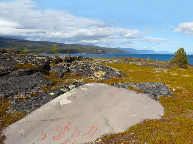 The rock art is located at 45 sites in 5 different areas of the Alta Fjord. There are thousands of rock carvings and paintings in the area. The 5 areas include;