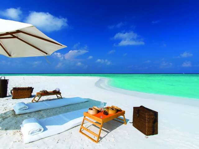 Escape the frenetic pace and chaos of everyday life, in to luxury's very own lap at Taj Exotica Resort & Spa, Malvies. Away from the sparkling lights of Male, this hotel is spread across the Emboodhu Finolhu Island in the middle of one of the largest lagoons in Maldives